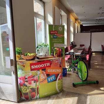 Wie lässt sich der Zusammenhang von Bewegung und Ernährung besser verdeutlichen, als auf einem Smoothiebike? Erleben Sie den Smoothiemixer, der durch eigene Muskelkraft betrieben wird, und nutzen Sie es für einen zwanglosen Einstieg in das Thema Ernährung und zur Sensibilisierung Ihrer Mitarbeiter.