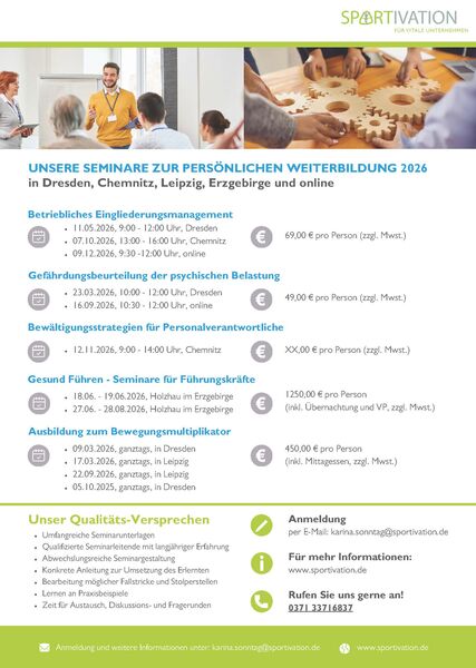 - 11. Mai, 9:00-12:00: Betriebliches Eingliederungsmanagement, Dresden